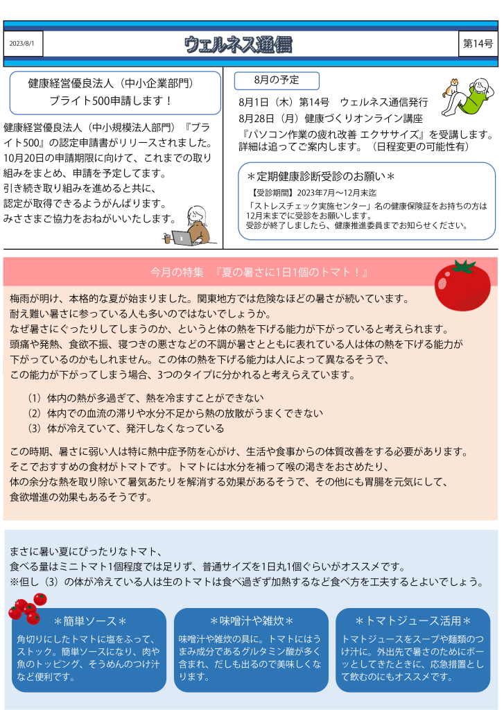 8月号 – 今月の特集『夏の暑さに1日1個のトマト!』