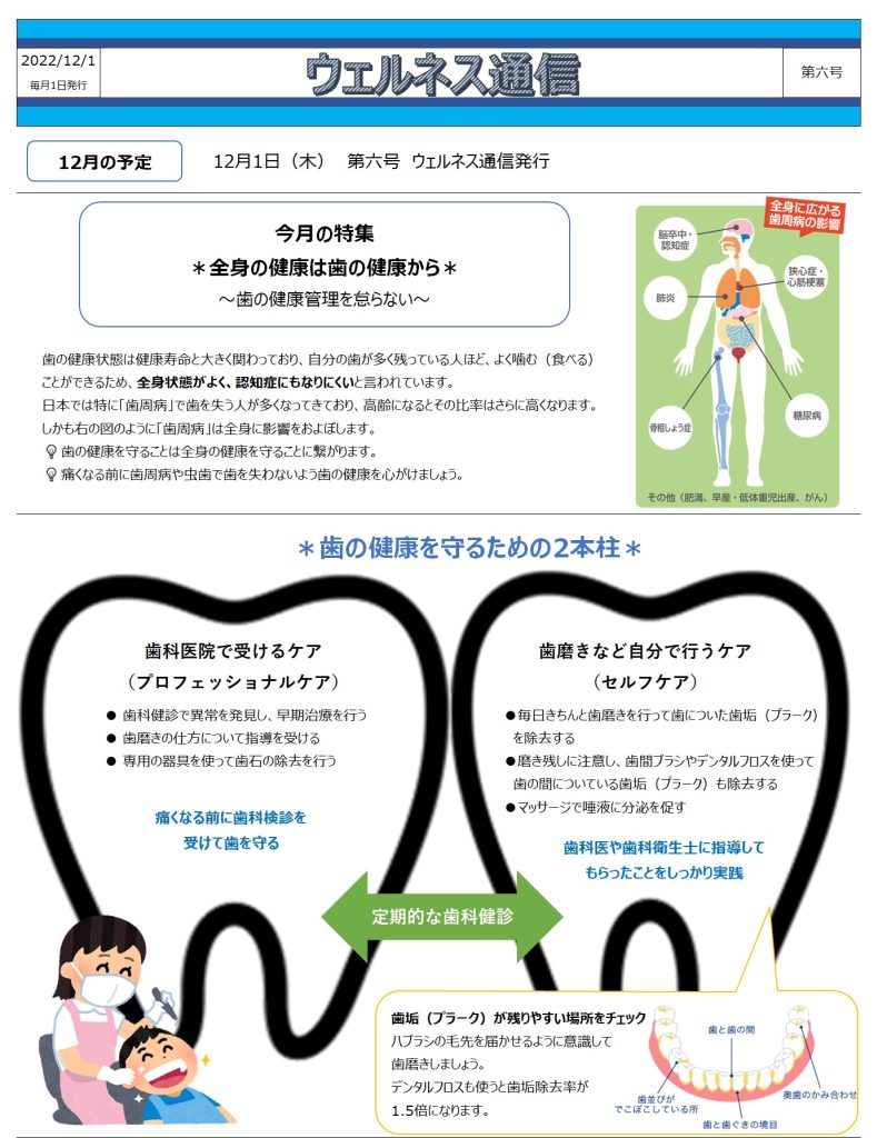 12月号 – 今月の特集「*全身の健康は歯の健康から* ~歯の健康管理を怠らない~」